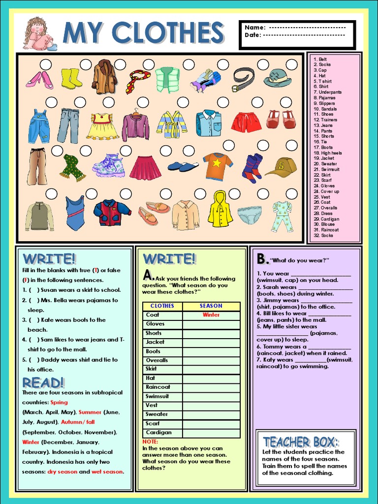 Using clothes brush without any care can cause fading of colour, in that particular area. From waterloo, on, canada on may 11 2003. After the spell, you need to keep your thoughts positive. Tell your mom that it'll just be for special events: Check out the full range. Add a definition for this slang term. There are many different types of shirts. What word do you get when you unscramble ceghlmosty? A piece of clothing covering the body from the waist to the feet, divided into separate parts for each leg. When you feel ready, put your forehead to the ground, imagining any extra energy returning to mother earth. Basic clothers that we wear and introduction to clothes like cotton, wool and raincoat along with a mention of seasons when worn The first is the action of wearing or carrying clothing or accessories. Then treat them like any old pair of pants.